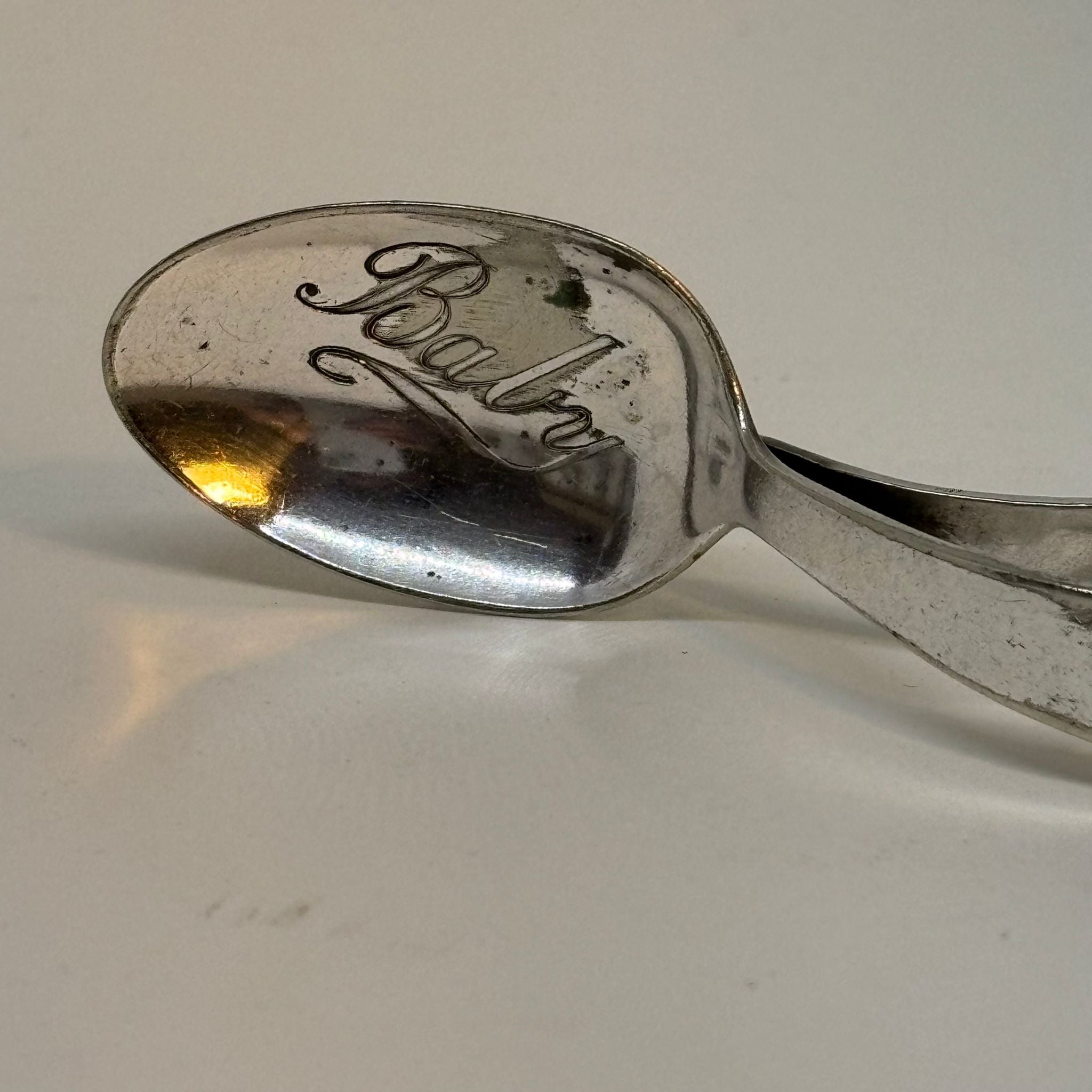 A vintage silver plated spoon for christening ceremonies. Inscribed with the word 'baby' inside the ball.